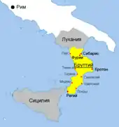 Область була заселена італійським плем'ям бруттіїв — відгалуженням племені луканів. Внутрішня частина Бруттію була гористою і слаборозвиненою, у той час як грецькі торговельні міста вели активну і прибуткову посередницьку торгівлю і процвітали.Також на території регіону знаходилися виведені під час Великої колонізації грецькі колонії (включаючи відомі Сібаріс та Кротон). Однак греки ніколи не розселялися вглиб Бруттію, а Бруттій, відповідно, не будував своїх міст на узбережжі, хоча іноді бруттії воювали з грецькими містами, подібно самнітам, та в союзі з ними у 3 ст. до н. е. завоювали декілька грецьких міст.