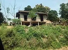 Перед хатою є невеличкий ґанок, де люди виконують домашні роботи. Часто поруч з головною хатою споруджують зерносховище для зберігання рису та іншої сільськогосподарської продукції. Щороку перед початком збирання врожаю кожна сім'я ремонтує свою хату або відбудовує прибудову для зберігання рису.