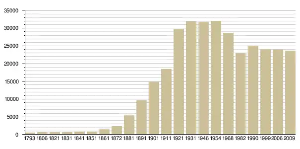 Динаміка населення (base Cassini de l'EHESS pour les nombres retenus jusque 1962[3], base Insee à partir de 1968 (population sans doubles comptes puis population municipale à partir de 2006)[4] · [5] ):