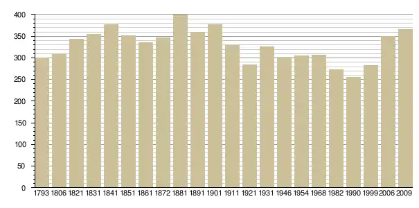 Динаміка населення (base Cassini de l'EHESS pour les nombres retenus jusque 1962[3], base Insee à partir de 1968 (population sans doubles comptes puis population municipale à partir de 2006)[4] · [5] ):