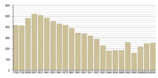Динаміка населення (Baratier, Duby & Hildesheimer pour l’Ancien Régime ; INSEE[3], EHESS[4] pour les chiffres issus des recensements légaux ):