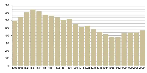 Динаміка населення (base Cassini de l'EHESS pour les nombres retenus jusque 1962[3], base Insee à partir de 1968 (population sans doubles comptes puis population municipale à partir de 2006)[4] · [5] ):