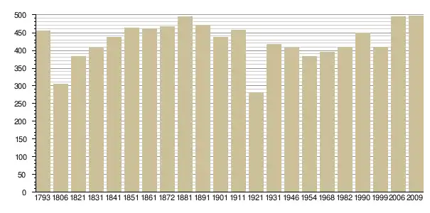 Динаміка населення (base Cassini de l'EHESS pour les nombres retenus jusque 1962[3], base Insee à partir de 1968 (population sans doubles comptes puis population municipale à partir de 2006)[4] · [5] ):