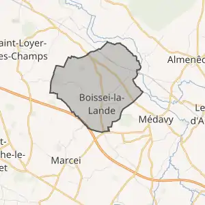 - Розташування муніципалітету Буасе-ла-Ланд на мапі Франції та сусідні муніципалітети