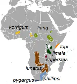 ![]() Топі (Damaliscus lunatus) | ||||||||||||||||||||