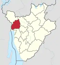 На півночі межує з провінцією Кібітоке, на сході — з провінціями Кайанза і Мурамвія, на півдні — з провінцією Бужумбура-Рурал, на заході проходить державний кордон з Демократичною Республікою Конго по річці Рузізі.