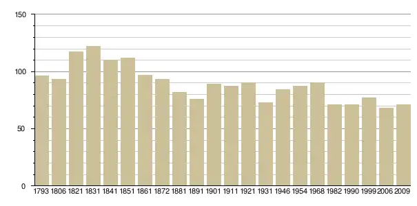 Динаміка населення (base Cassini de l'EHESS pour les nombres retenus jusque 1962[3], base Insee à partir de 1968 (population sans doubles comptes puis population municipale à partir de 2006)[4] · [5] ):