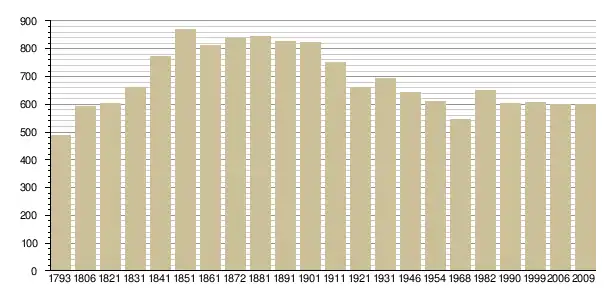 Динаміка населення (base Cassini de l'EHESS pour les nombres retenus jusque 1962[3], base Insee à partir de 1968 (population sans doubles comptes puis population municipale à partir de 2006)[4] · [5] ):