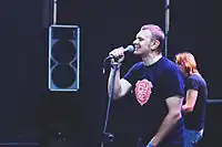 ![]() Засновник і вокаліст гурту - Сашко Положинський під час виступу на "Бандерштаті" | |