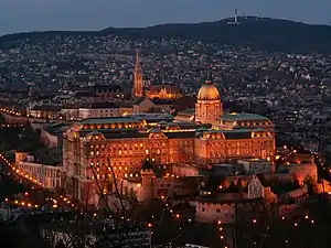 ![]() Починаючи зверху, зліва направо: загальний вигляд міста з річкою Дунай, лев охороняє Ланцюговий міст Сечені, Площа Героїв, Будинок парламенту Угорщини, Рибальський бастіон, Базиліка Святого Іштвана, та панорама з гори Геллерт із Будайським замком зліва | |||||||