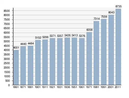 Станом на 31 грудня 2014 року в муніципалітеті офіційно проживав 631 іноземець з 54 країн, серед них 248 громадян країн Євросоюзу та 5 громадян України.[4]