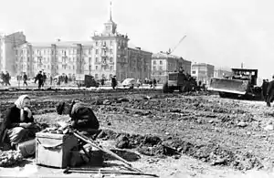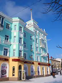 Одними з перших на вулиці Радянській виросли «будинки зі шпилем», які виконані у стилі сталінського ампіру. Подібні ансамблі спостерігались по всьому Радянському Союзу (сталінські висотки, готель «Україна» у Києві, будинок зі шпилем на площі Конституції у Харкові, будинки зі шпилем на Театральній площі в Маріуполі).