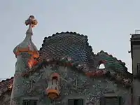 Насправді така форма елементів фасаду є алегоричною оповіддю легенди про Святого Юрія (Георгія) Змієборця, що вбиває дракона: Св. Юрій (каталанською Сан Жо́рді) є покровителем Каталонії. Форма даху будинку нагадує спину дракона, дерев'яні сходи всередині будинку нагадують його хребет, а дахівка на даху — луску на шкірі тварини. На даху встановлено хрест — цей елемент для дизайну житлових приміщень Ґауді використовував досить часто.
