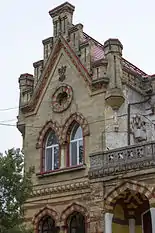 Вигляд будинку відповідає неоготичному стилю. Невіддільними його елементами є численні ажурні деталі, які надзвичайно прикрашають цю будівлю.[1]