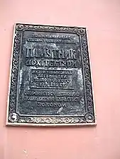 У південну стіну будівлю вмонтовано плиту з написом «В. В. Тарновський».