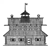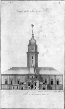 | Вигляд головного фасаду. Креслення Андрія Меленського. | ||||
