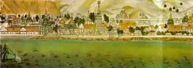 ![]() Іван Ушаков. Ратуша на фрагменті «Креслення міста Києва …», 1695 |