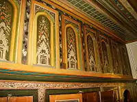 Вся північна стіна вітальні складається з вбудованих шаф, які розмальовані орнаментами в стилі бароко. Стеля вітальні виконана із дерева. На ній зображено сонце з дванадцятьма гострими прямокутниками, що символічно зображують число місяців року.[1]