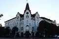 Під час післявоєнної реконструкції (1952-1953, архітектор В. Зуєв) будинок втрачає характерні вежі. Замість п'яти залишається лише одна — центральна, утім і її відновлено не у первісному вигляді. Натомість з'являються три барокові фронтони, а під центральною вежею — годинник.