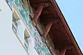 Інші елементи декоративного оздоблення — «козацькі» трапецієподібні вікна, яскраві панно з майоліки (зокрема, павичі на фасаді по вулиці Короленка), карніз на різьблених дерев'яних кронштейнах. У внутрішньому оздобленні будинку також широко використовувалося різьблене дерево.