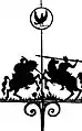 Горішні вікна малих веж прикрашені картушами з гербом Війська Запорізького — зображенням козака у високій шапці, з шаблею на поясі та мушкетом на плечі.
