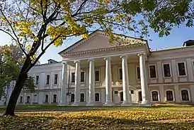 У 1802—1804 — реконструйовано за проектом архітектора А. Карташевського: пандус і галерею із західного боку розібрано, головним став східний фасад, на місці ґанку збудовано шестиколонний портик іонічного ордеру, увінчаний трикутним фронтоном.