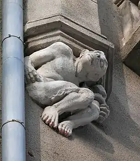 - На рівні четвертого поверху симетричною, зліва і справа від центральної частини будівлі, видно створені в 1914 році дві зігнуті скульптури людиноподібних істот, які підпирають великі вертикальні колони фасаду. І тільки через 87 років після їх ліплення — після виходу на екран 2001 року фільму з трилогії Джона Толкієна «Володар перснів», — стало видно разючу подібність даних людиноподібних з персонажем фентезі Голлумом. За даними скульптурами так і закріпилася назва «Горлуми» (лівий і правий). Крім того, у сучасних студентів театрального факультету стало прийнято підфарбовувати нігті тому, до якого можна дотягнутися з вікна 4 поверху.
