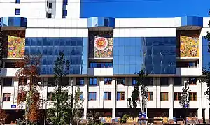 ![]() Килимово-орнаментальні композиції Ольги Рапай на фасаді будинку | |