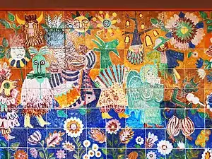 1987 оздоблена панно у народному стилі.