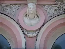 За рожевий колір, пишний декор фасаду, жіночі статуї та медальйони з жіночими голівками споруду прозвали «Будинком Афродіти»[1].