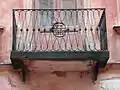 В центрі фасаду, на другому поверсі розташований балкон, який підтримують два візерунчасті металеві кронштейни. Балкон огороджений металевою ажурною решіткою, в центрі якої — вписана в коло монограма і дата «F.J. 1881»[3] (дата означає рік чергової реконструкції, а ініціали — тогочасного власника, Франца Йоха[1]). Вікна прямокутні, облямовані лиштвами, на другому поверсі прикрашені поличковими сандриками.
