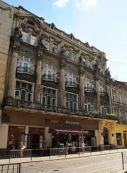 За Польщі в приміщення першого поверху були магазин горілок і лікерів Канторовича, друкарня Ґольдмана, крамниця тканин Кіндлера, магазин взуття Лаури Брук і ювелірний магазин Вельтшталя. За радянських часі тут був магазин одягу «Піонер». Тепер тут магазин одягу «Злата»[3]