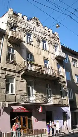 Будівля зведена у 1908 році за проектом архітектора Артура Шлеєна. У 1933–1934 році архітектор Генрик Зандіг розробив проект реконструкції магазинних порталів. За Польщі тут була художня друкарня «Art». Тепер тут кафе «Львівська брама».[2]