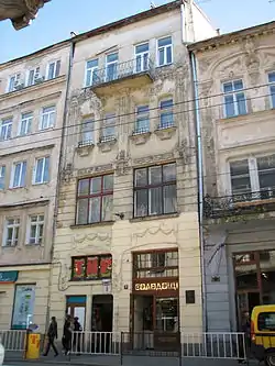 Житловий будинок збудовано за проектом Альфреда Захаревича у 1899 році як триповерховий для Германа Бака. У 1927 році добудований четвертий поверх, тоді власником будинку був підприємець Едмунд Строменгер, який жив у ньому до 1939 року. На першому поверсі будинку до війни містилися магазин друкарських машинок «Машинополь», магазин ювелірних прикрас «Рака» та офіс Войтовича, який займався продажем та купівлею нерухомості.[2]У 1950-х роках тут була майстерня з ремонту й заправки авторучок. Пізніше за радянських часів тут обладнали відоме серед львів'ян кафе «Рубці по-львівськи». Зараз тут міститься магазин «Солодощі» й тир «Рембо»[3]