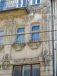 Будинок зведений у стилі сецесія, який був одним з перших прикладів цього стилю у Львові.[4] Чотириповерховий, цегляний, вузький будинок. Внутрішнє планування анфіладного та змішаного типу. Симетричність фасаду зберігається по всіх поверхах, окрім першого, де головний вхід зміщений вліво зі світловим ліхтарем над ним, який обрамлений декоративною ліпниною з рослинним орнаментом. Вікна на другому поверсі великі, прямокутні. Вікна третього поверху менші, з профільованими обрамуваннями, згори заокруглені по кутах. Четвертий поверх з великим балконом по центру.