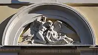 Класичний фасад додатково підкреслений розміщеним над балконним вікном барельєфом «Амур і Психея» роботи скульптора Пауля Ойтеле.