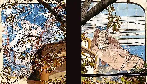 Майоліка «Пан і німфи» на фасаді (фрагменти)