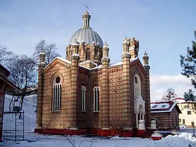У комплекс Будинку інвалідів входить каплиця, споруджена на північний захід від основної будівлі, зведена у романо-візантійських формах. Фрагментарно в ній зберігся стінопис. У квітні 1993 року речовий склад з каплиці було перенесено в інше місце та розпочато відновні роботи. У травні 1994 року на куполі каплиці було встановлено хрест. Реставрація та оздоблення каплиці завершено у 1998 році. Урочисте освячення відновленої каплиці відбулося 11 жовтня 1998 року.