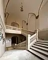 Будівля має дві декоративні в'їзди у внутрішнє подвір'я, що утворене дуговою галереєю. В будинку збереглися деякі елементи інтер'єрів, у вестибюлі знайдений зафарбований альфрейний живопис.