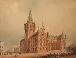 Конкурс відбувся 1856 року, в ньому перемогли архітектори Генріх Ернст Ширмер та Вільгельм фон Ганно. Однак Парламент прийняв рішення відхилити пропозицію, тому що будівля була дуже схожою на церкву.