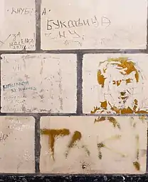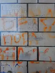 Восени 2004 року учасники Помаранчевої революції залишили на колонах і стінах головпоштамту графіті. Протестувальники писали ім'я і малювали зображення свого кандидата Віктора Ющенка, назви міст, з яких приїхали, гасла Помаранчевої революції відповідним кольором (наприклад, гасло «Так!») та інші політичні лозунги (зокрема й іншої держави — «Живе Білорусь!»), назви громадських об'єднань («Пора!»), дати першого і другого турів виборів Президента України (31 жовтня — 21 листопада 2004 року) тощо. Частину графіті у рамках меморізації пам'яті про ті події вирішено було зберегти. Фрагменти надписів на колонах накрили оргсклом, однак із часом вони вигоріли.