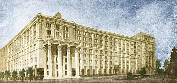 Головпоштамт вдалось збудувати у 1936—1941 роках за проєктом Василя Осьмака і С. Германович[7][8].