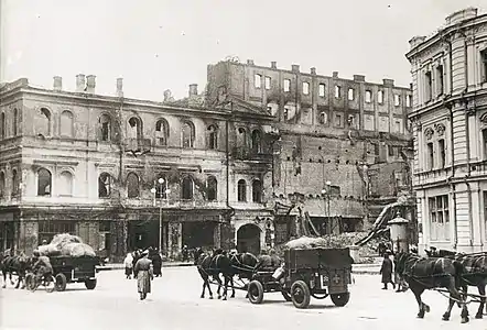 У вересні 1941 року Палацу зв'язку і колишню будівлю Ейсмана знищено внаслідок підриву середмістя радянськими диверсантами[9].