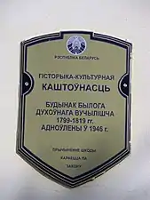 Табличка про визнання будівлі історико-культурною цінністю Білорусії