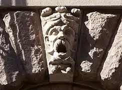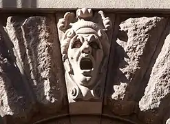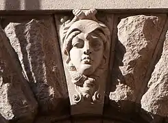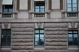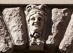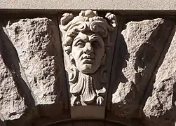 Над вікнами першого поверху розташовані 57 маскаронів — портрети відомих шведів, вирізаних з каменю, яких архітектор Арон Йохансон (1860—1936) вважав видатними для створення будівлі. Серед людей, увічнених таким чином, — Гуннар Веннерберг та сам архітектор Арон Йоганссон. Скульптору-орнаменту Густаву Фредріку Норлінгу було доручено ліпити макети голів, після чого їх вирізали Norrtelje Mekaniska Stenhuggeri AB, а потім сформували остаточний камінь у віконній арці.