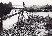 Під час установчих робіт було залито 37 000 кубічних метрів маси для фундаменту, а також забито більше 9 000 дубових паль. Фундамент з каменю було закладено 13 травня 1897 року королем Оскаром II, того ж дня, коли в 1897 році відкрилася Стокгольмська виставка, а після майже восьми років побудови парламентська частина була відкрита 11 січня 1905 року. Через рік Ріксбанк зміг використовувати своє нове приміщення.