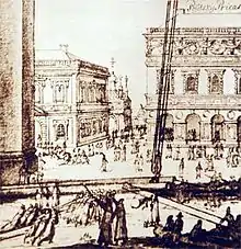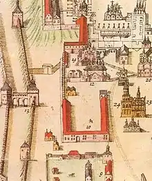 Фрагмент фасаду цієї будівлі видно на задньому плані на малюнку Е. Пальмквіста «Підйом дзвона на Іванівську дзвіницю» (1675 р.).