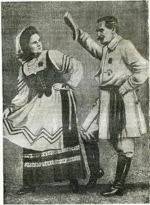 З. Абрамович так описує виступ танцювальної групи у виставі[19]: