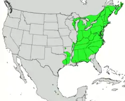Зустрічається в Канаді від провінції Нова Шотландія до північного берега затоки Джорджіан-бей (озеро Гурон). На території США росте в північній частині Нової Англії і в листопадних лісах східних районів США.