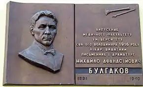 Миха́йло Опана́сович Булга́ков (рос. Михаил Афанасьевич Булгаков; 3 (15) травня 1891, Київ — 10 березня 1940, Москва) — російський письменник, драматург, лібретист, театральний режисер, актор та лікар українського походження. Член Всеросійського союзу письменників (1923–1929) та спілки письменників СРСР (1934-1940). Серед найвизначніших творів Булгакова: «Майстер і Маргарита», «Собаче серце», «Іван Васильович», «Біла гвардія», «Дияволіада».